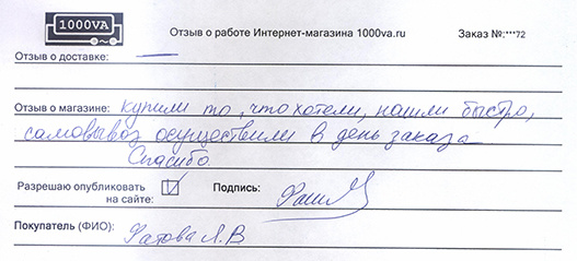 Отзывы о работе интернет-магазина 1000va.ru