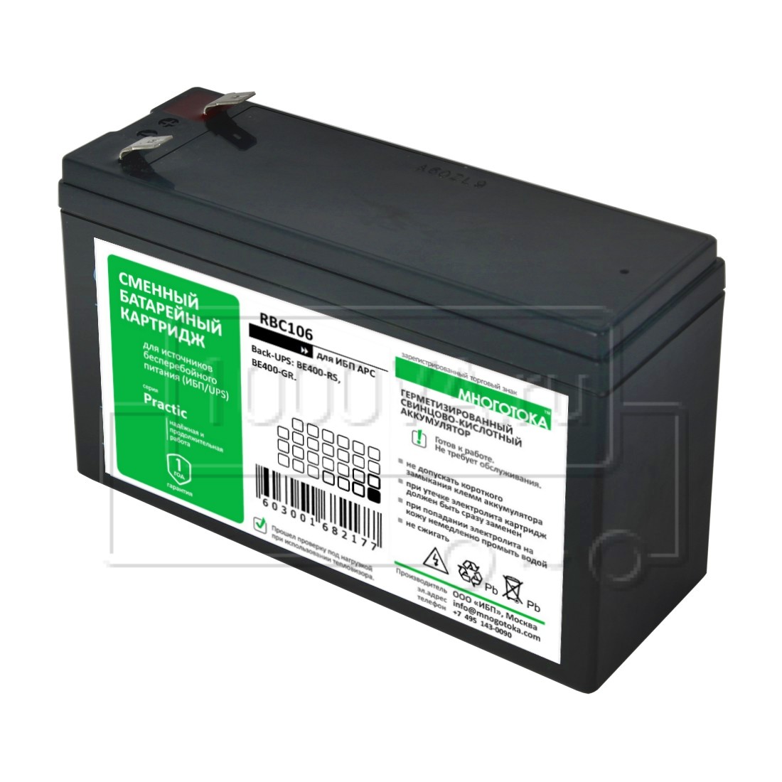 Батарейный картридж RBC106 Practic может быть использован в ИБП APC Back-UPS BE400-RS, BE400-GR.