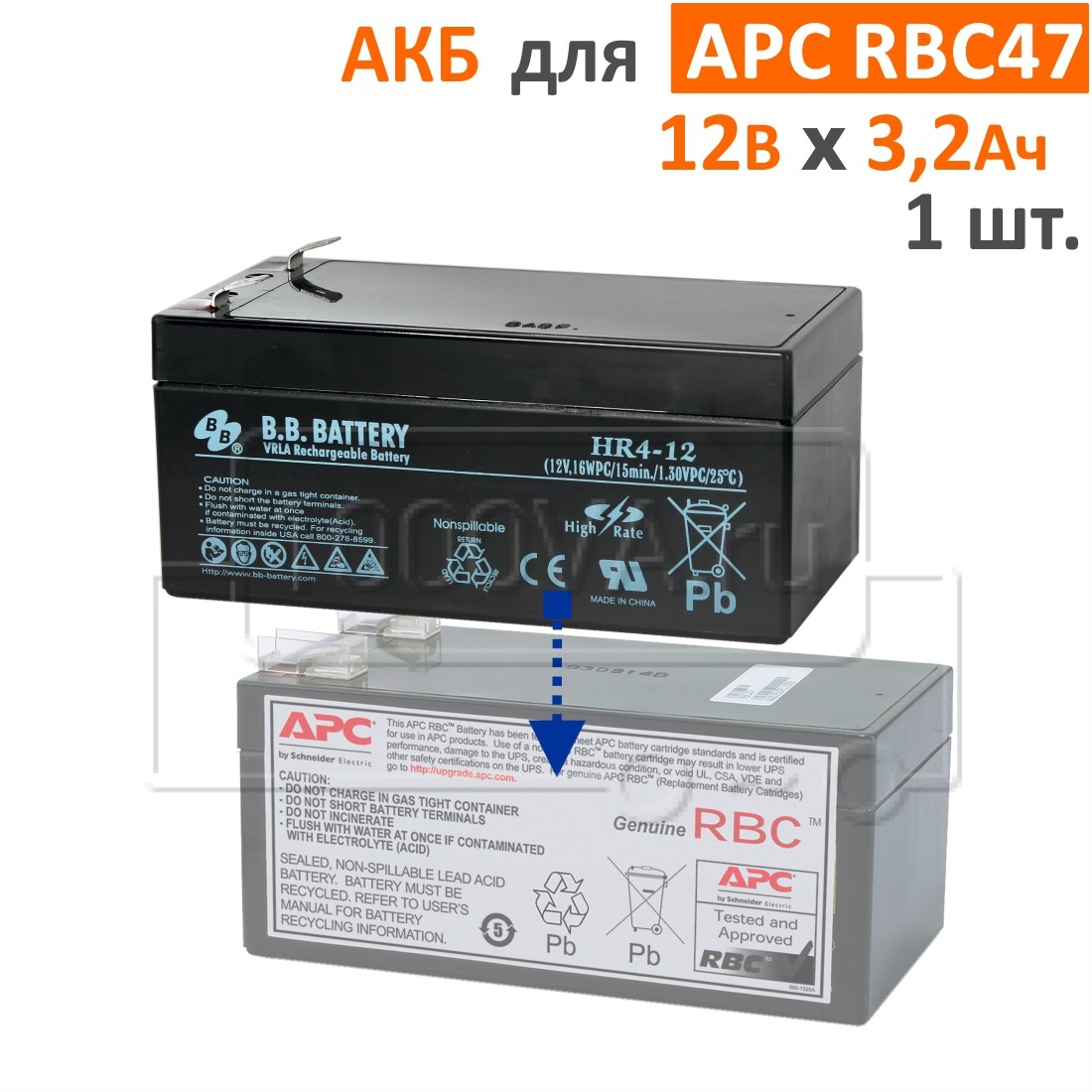 Стандартный батарейный картридж RBC47 компании Schneider Electric (APC) – это стандартный необслуживаемый герметичный свинцово-кислотный аккумулятор напряжением 12 В и емкостью 3,2 Ач. Картридж может быть заменен самостоятельно.
