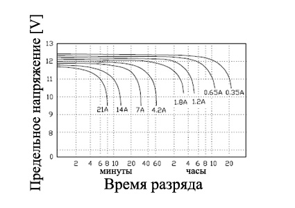 Зависимость времени разряда аккумуляторной батареи/аккумулятора Hi-Watt LA 1270 от тока разряда (при 25 градусах)