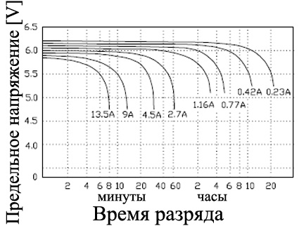 Зависимость времени разряда аккумуляторной батареи/аккумулятора Hi-Watt LA 645 от тока разряда (при 25 градусах)