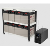 Stark Country 3000 Online ONE — онлайн ИБП двойного преобразования с постоянной стабилизацией напряжения. Данный источник бесперебойного питания характеризуется значительной устойчивостью к перегрузкам: до 5 секунд при 150% нагрузке. Встроенный микропроцессор постоянно контролирует параметры сети и осуществляет прецизионную стабилизацию напряжения. В случае короткого замыкания STARK COUNTRY 3000 ONLINE ONE автоматически отключает питание и самостоятельно восстанавливает работу системы после устранения неисправности. Обратите внимание, что устройство поставляется без аккумуляторных батарей, которые необходимо приобрести отдельно. Для подключения к ИБП требуется восемь аккумуляторов с максимальной емкостью 240 Ач. Продолжительность автономной работы ИБП пропорциональна емкости выбранных аккумуляторных батарей. Дополнительно предусмотрена возможность удаленного контроля и управления устройством посредством сетевой SNMP-карты.